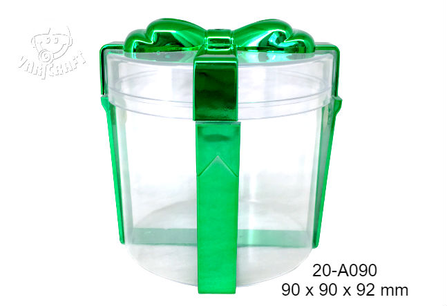 Round shape container with Ribbon Bow (H: 3.75 inch) - Green plated Bow